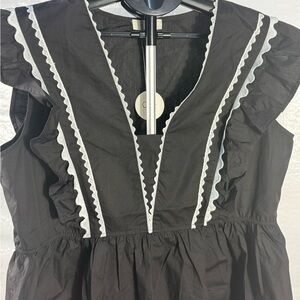 Black Ruffled V-Neck Top