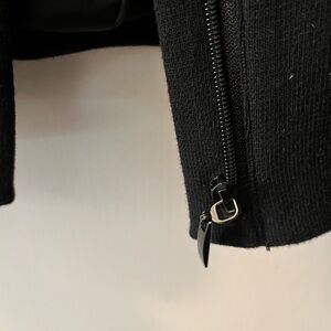 Elegant black women's jacket with stylish ruffle detailing. Perfect for adding a touch of sophistication to any outfit.