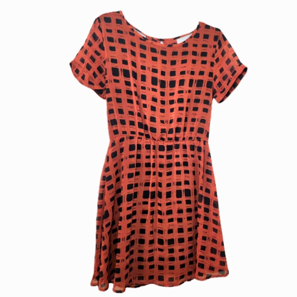 Stylish orange-brown rust and black checkered dress. Perfect for casual outings.