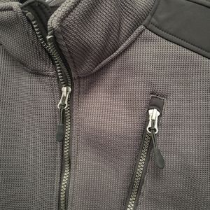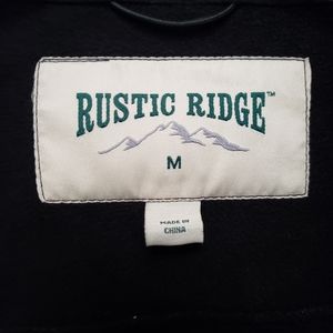 Black Rustic Ridge jacket with front zippered chest pocket as well as two side zippered pockets. Gently worn and in great condition. Shell: 100% Polyester. Size M