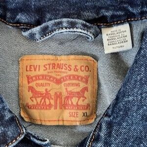 Jean/Denim jacket Levi Jacket size XL Measurements in picture Jacket is in great shape and the patches and back panel were professionally sewn on. Back patch is attached to the jacket with wonder under and sewn perfectly on the back panel. ***I have no affiliation to any of these bands***