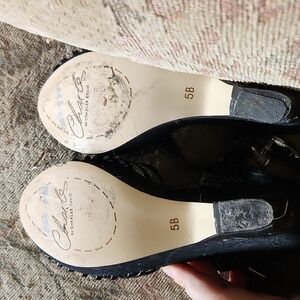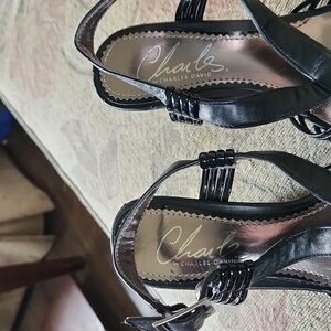 Black Sandal Wedges by Charles David size 5. 4.5" heel.