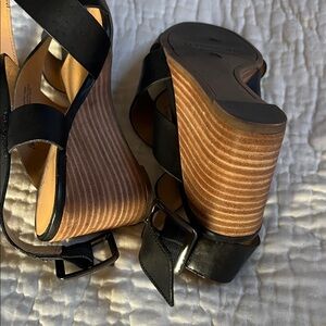 Black Sandals strapped 6.5 thick ankle strap wedge heel