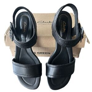 Black Sandals Clarks Desirae Coast Sandal Open Toe Block Heeled Sandals Size 6