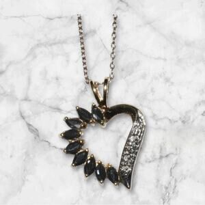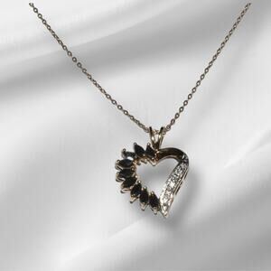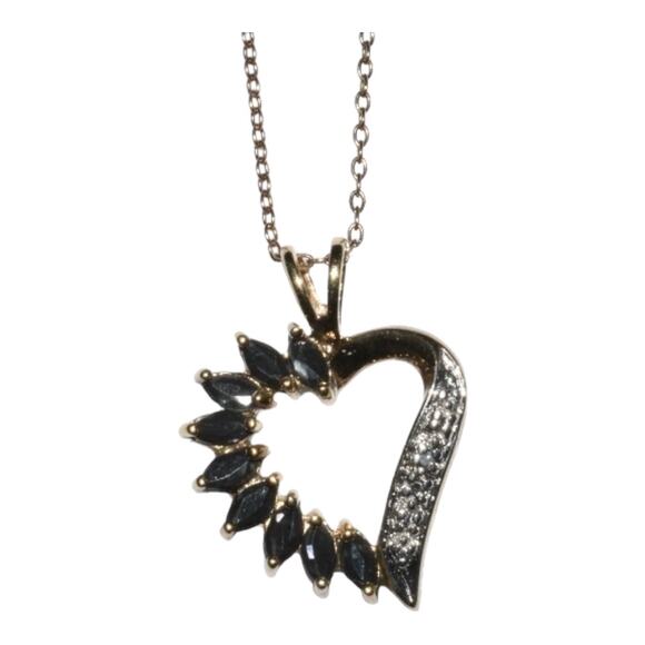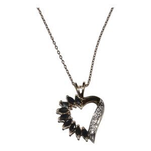 Black Sapphire Diamond Heart Pendant Necklace 18in Chain GP 925 Sterling Silver