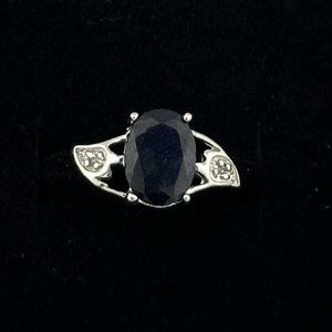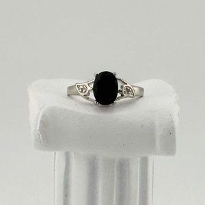 Black Sapphire and Diamond Accent Oval Ring - Sterling Silver - Size 7 - Simple