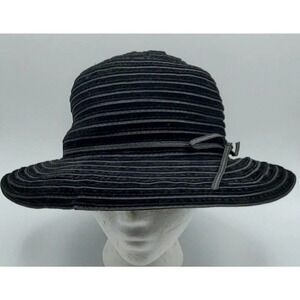 BRAND NEW WITH TAGS Black Sarasota by August Accessories Women's Brim Bucket Hat. Head Display Not Included. There is no 'material tag' so I have to 'guess' at what I think it is. The darker black material is what I consider a faux velvet type and lighter is some type of ribbon material. Review ALL Pictures which show Condition of Item