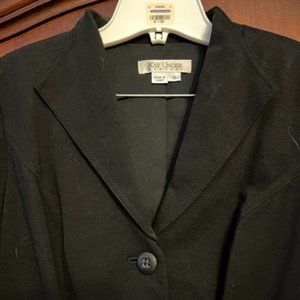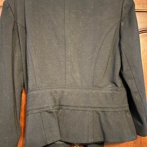 Banded black jacket with sash at the waist.