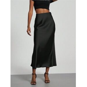 Black Satin A-Line Skirt High Waisted Long