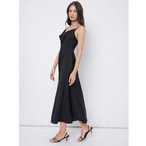 Black Satin Cami Dress Midi Adjustable Spaghetti Straps