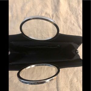 Beautiful Black Satin by Carvela with Silver Metal Handle and Crystal Detail Bordering Both Sides.