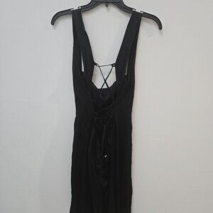 Black Satin Lace-Up Back Mini Dress – Sleek Fit, Night Out Glam 🖤