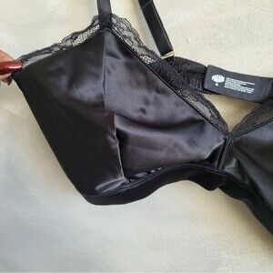 Black Satin Like Bralette Parade Lace Trim Sz XL