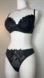 Black Satin Lily Embroidered Floral Overlay Push-Up Bra & Thong Panty Set NEW