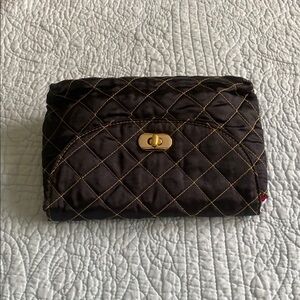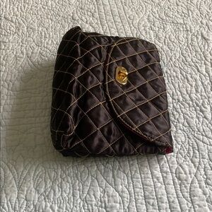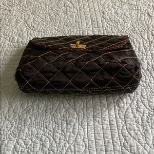 Black Satin Quilted Clutch with Gold-Toned Closure