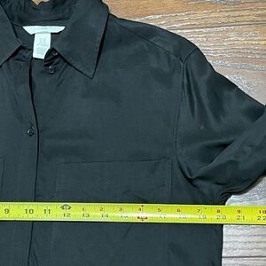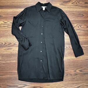 Black Satin Shirt‎ Dress Long Sleeve Button Up Pockets Oversized XS