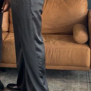 Wide Leg Pleat Front Satin Tailored Pants & Oversized boxy satin blazer. Elegant black dress pants and jacket for men. Perfect for formal occasions.