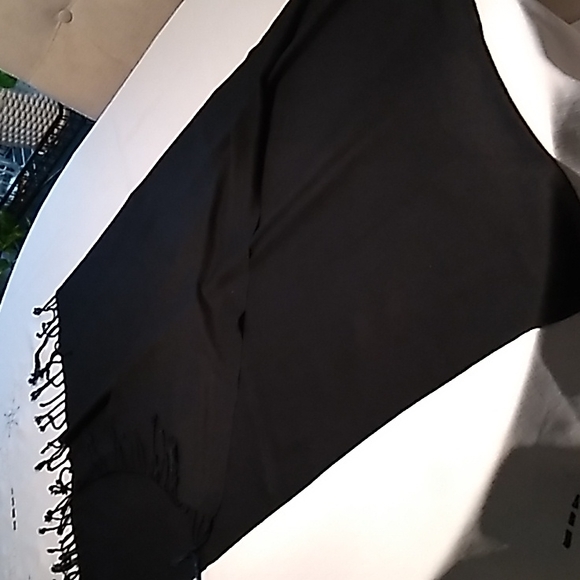 Very nice black scarf. I just had it dry cleaned. No snags or tears. Does not have any tags on it, so I don't know what kind of material it is. Feels almost like silk.