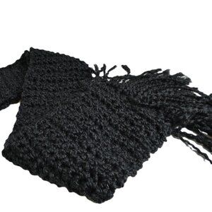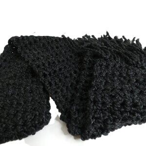 I hand crocheted this new oversize chunky, warm, Dark Black Scarf with fringe.