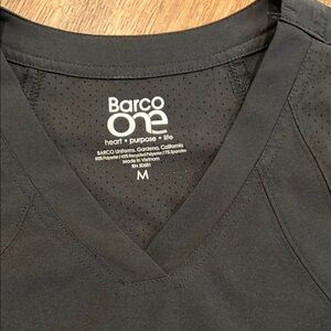 Comfortable black barco one scrub top and pants set. Ideal for medical professionals. Top has side pockets and pants have cargo pockets in both sides.
