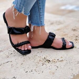 Black Scrunchy Flats Sandals