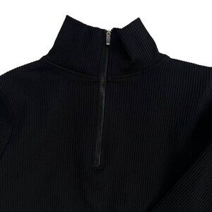 Black Seamless Half Zip Crop Top