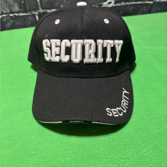 Black cap with bold white 'SECURITY' lettering. Perfect for security personnel.