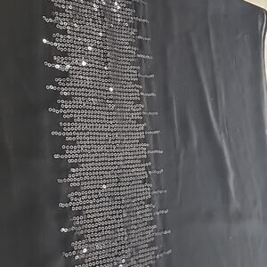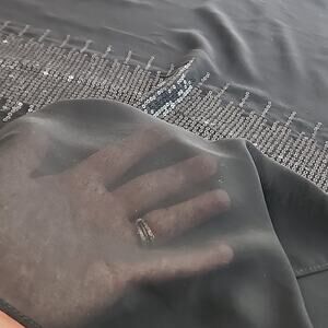 Great for a formal event. Black sheer scarf or wrap. See last image with my hand under one layer of the fabric for thickness.