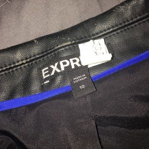 Detailed black blazer with leather on collar and lower part, bear button. Gently worn, still on great condition