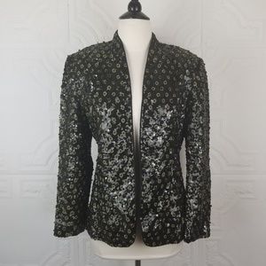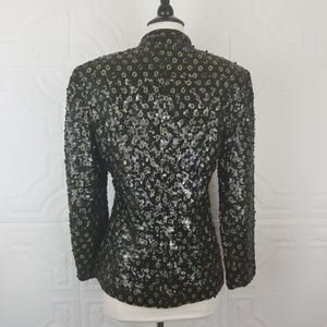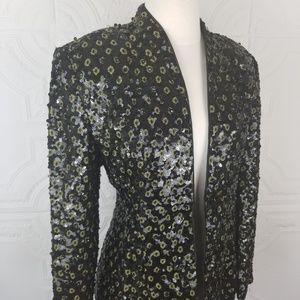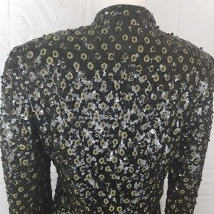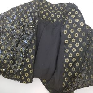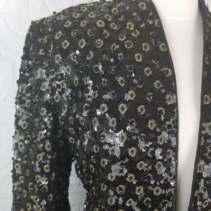 Black Sequin Beaded Evening Jacket Sequin Cocktail Blazer Gold Flower Accents S
