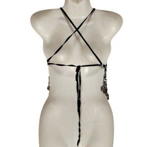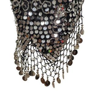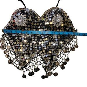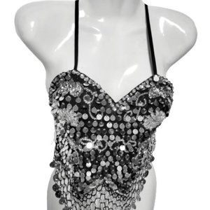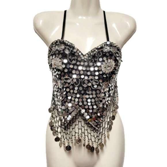 Black Sequin Halter Crop Top Silver Sequin Backless Belly Dancing Tops NEW