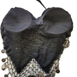 Belly Dance Black Halter Top with Sparkling Silver Sequins