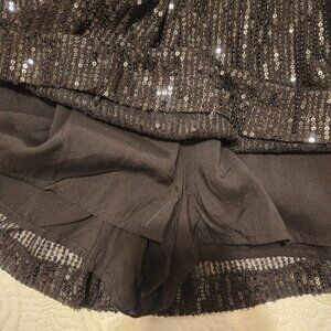 Elegant black sequin mini dress with short sleeves and built in shorts. Perfect for evening events. Worn once and in excellent condition. Pet-friendly, smoke free home.