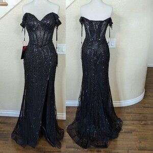 Black Sequin Off the shoulder Corset Formal Prom Evening Mermaid Dress 8