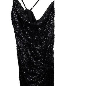 Keywords: sequin dress, black dress, party dress, maxi dress, evening gown, cowl neck, strappy back, backless dress, slit dress, prom dress, formal dress, special occasion dress, glamorous dress, cocktail dress