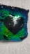 Black sequin pillow featuring a vibrant green 'LOVE' design. Perfect for adding a touch of sparkle to any room.