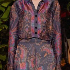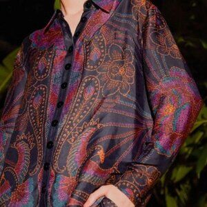 Farm Rio Black Sequin Scarf Shirt