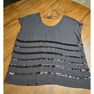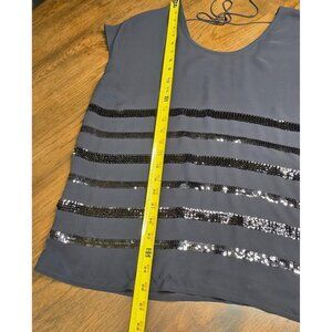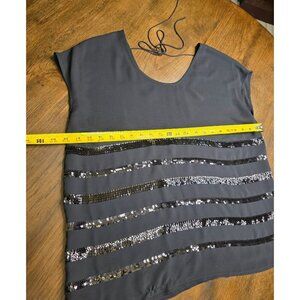 Black Sequin Stripe Sleeveless Top With Tie Back Detail Womens M Polyester Blend