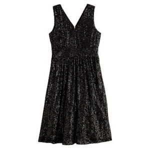 Black Sequin V Neck Dress By Draper James Women's Size 20W Tea Length