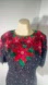Black Sequin and beads Lawrence Kazar top with Red and Green Floral Design