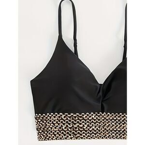 Turn heads this summer with this stunning black bikini featuring wide golden sequin bands. Made of high-quality stretchy lycra, this two-piece swimsuit offers a flattering high-waist bottom and a supportive top with adjustable thin straps. Perfect for beach getaways, pool parties, and vacation photoshoots.