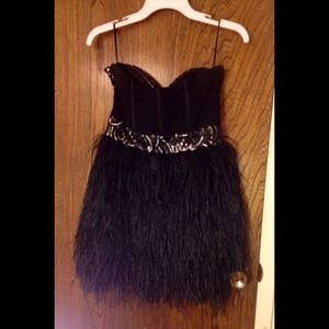 Black Sequin/Feather Bustier Dress from Bebe👗🎉