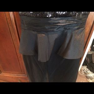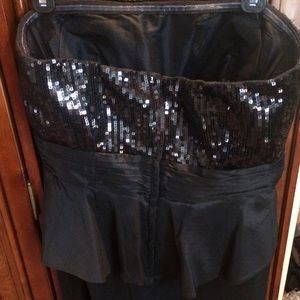 Strapless dress with sequins around the chest and peplum by the waist.