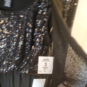 Black Sequined Jacket, Top & Pants Petite 3-Pc(NWT)
