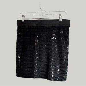 Black Sequins Mini Skirt Wide Elastic Waist Size Medium