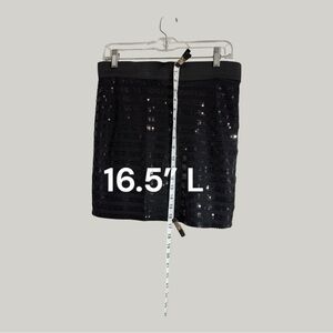 Black Sequins Mini Skirt Wide Elastic Waist Size Medium