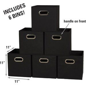 Black Set of 6 80-1 Foldable Fabric Storage Bins Cubby Cubes With Handles