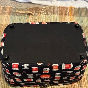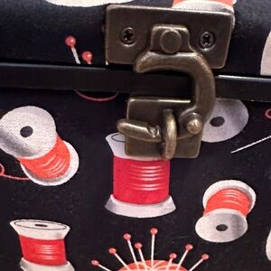 Black Sewing Box with Colorful Spool Pattern