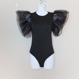 Black Sexy Flutter Sleeve Bodysuit Size Medium