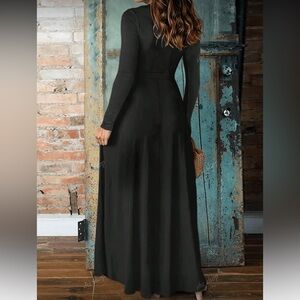 Black Sexy V-Neck Long Sleeve High Slit Evening Dress (Belt Not Included)